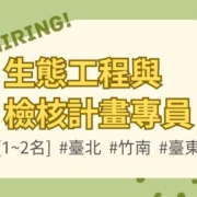 生態工程與檢核計畫專員 [1~2名] #臺北 #臺東 #竹南